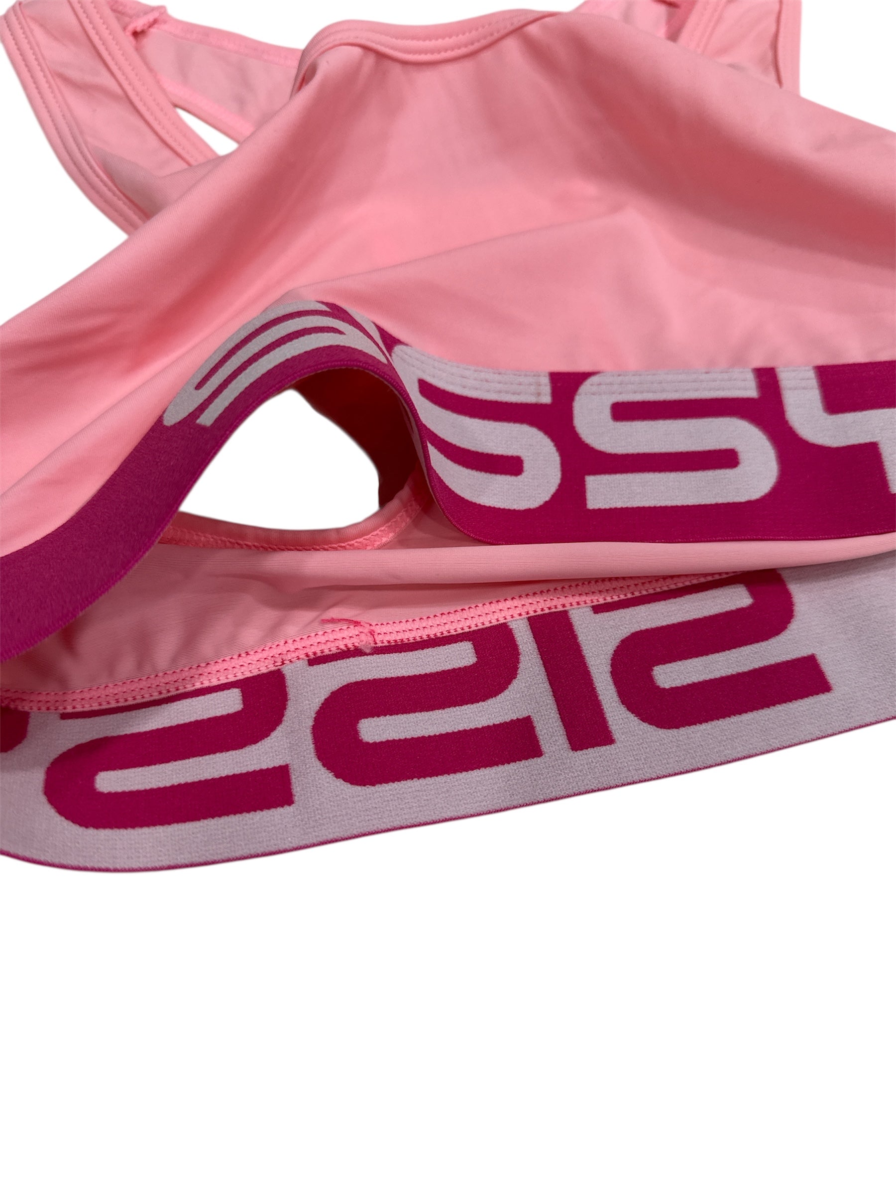 Premium sporty sissy crop top designed for the LGBTQ+ community, featuring a bold branded band with SISSY logo in white letters on a hot pink band. Pairs perfectly with the Sissy Bold Thong for a complete look.